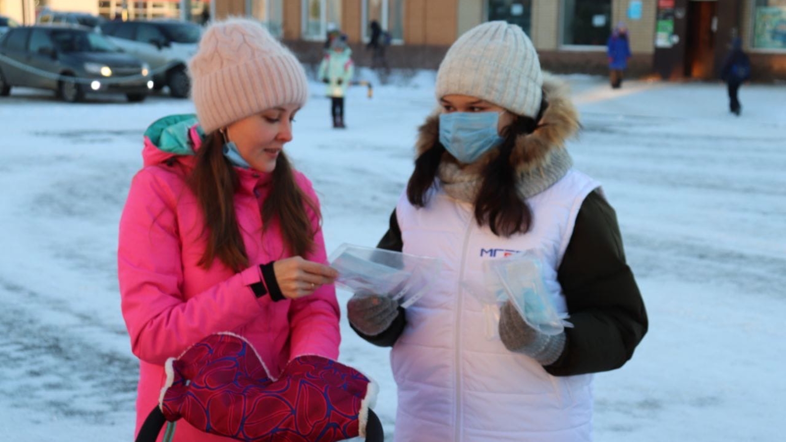 На центральных улицах и площадях молодогвардейцы раздали жителям бесплатно 10 тысяч медицинских масок.