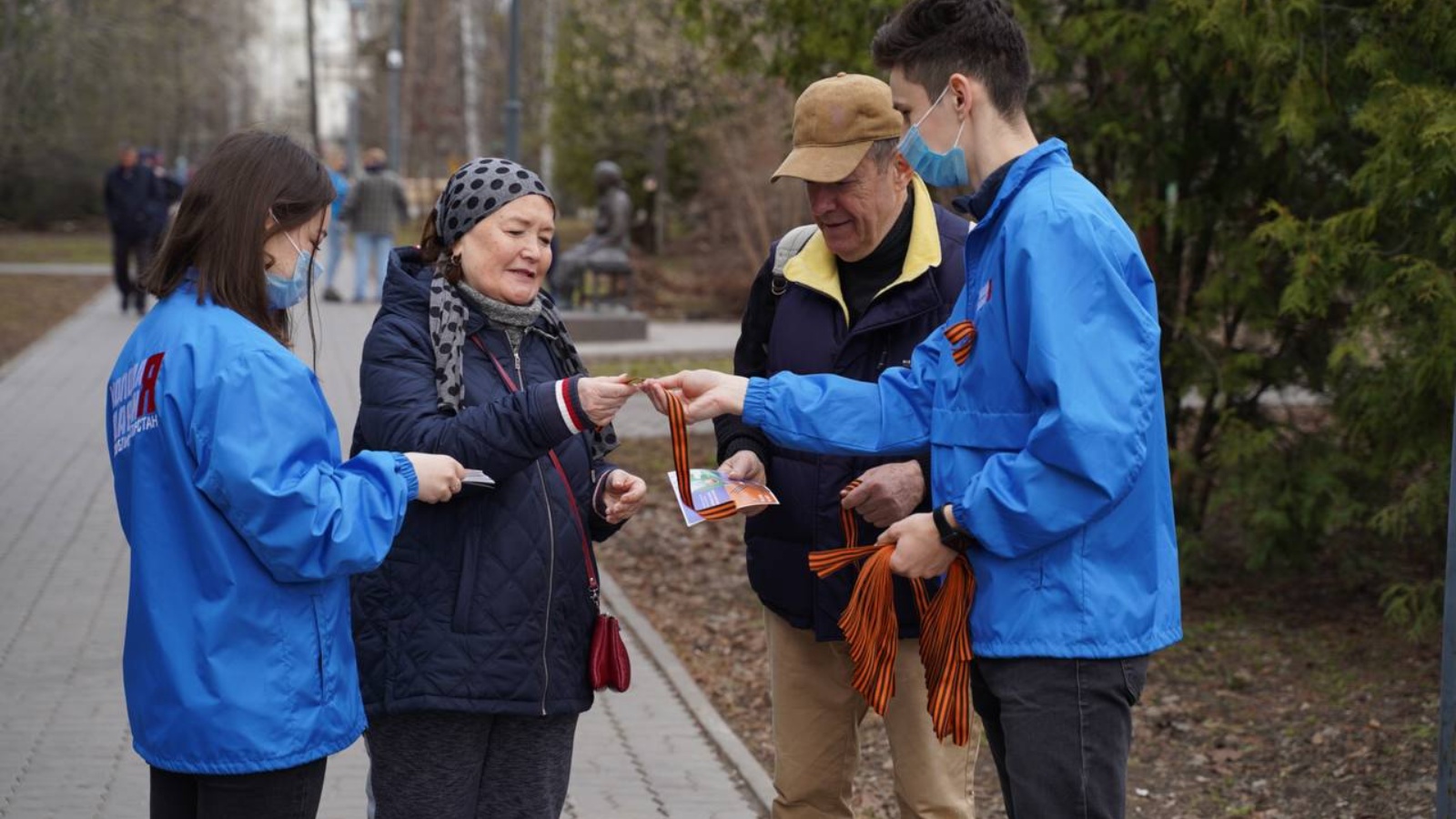 Такие же акции прошли на центральных площадях и улицах в муниципальных районах Республики Татарстан. Акция пройдет с 24 апреля по 9 мая. Молодогвардейцы планируют раздать в районах более 20 000 георгиевских лент.