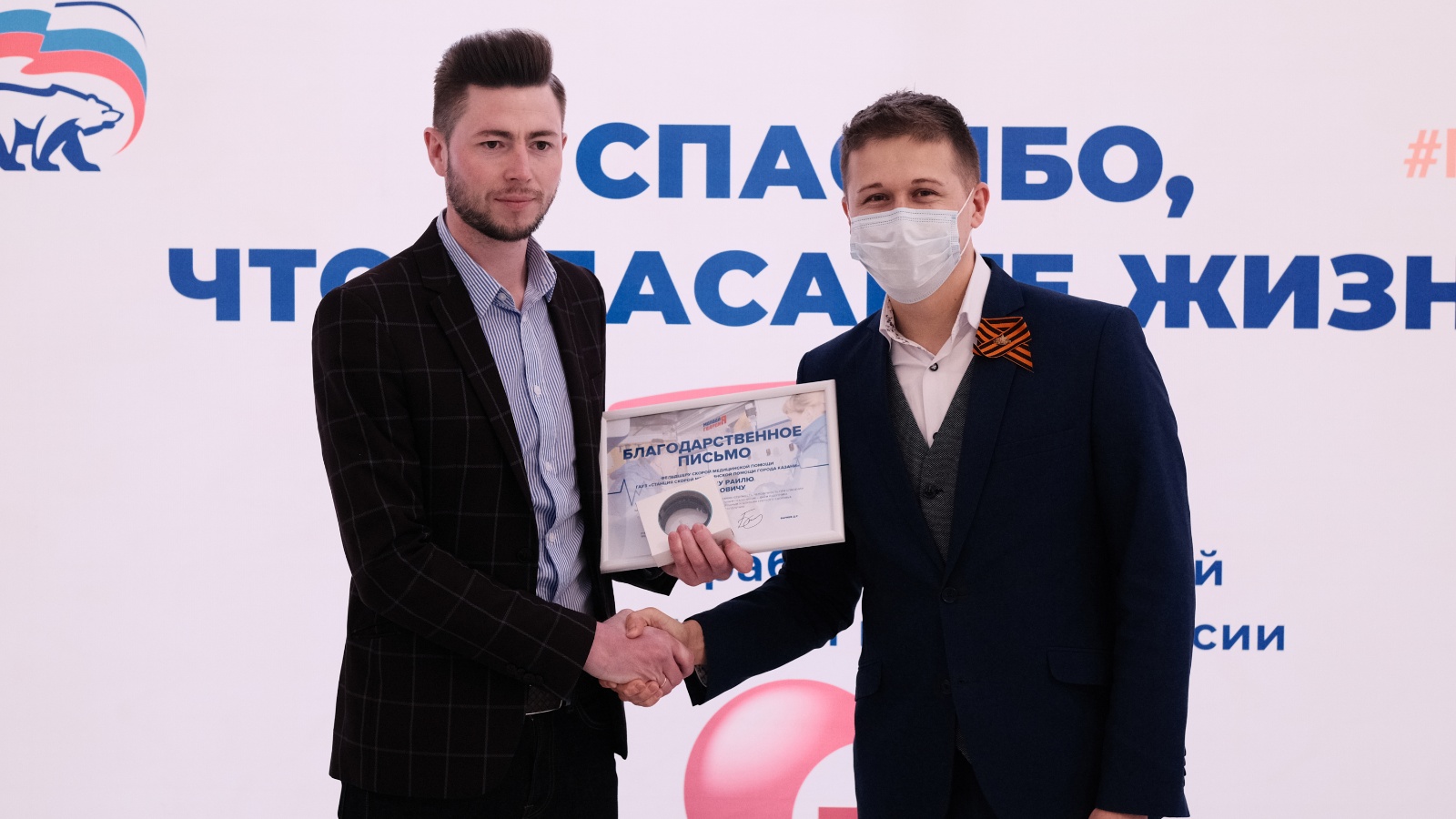 Также молодогвардейцы наградили фельдшера скорой помощи Раиля Каримова благодарственным письмом. Он помог разогнать пробку на перекрёстке Даурская – Зорге, где сгорела подстанция.