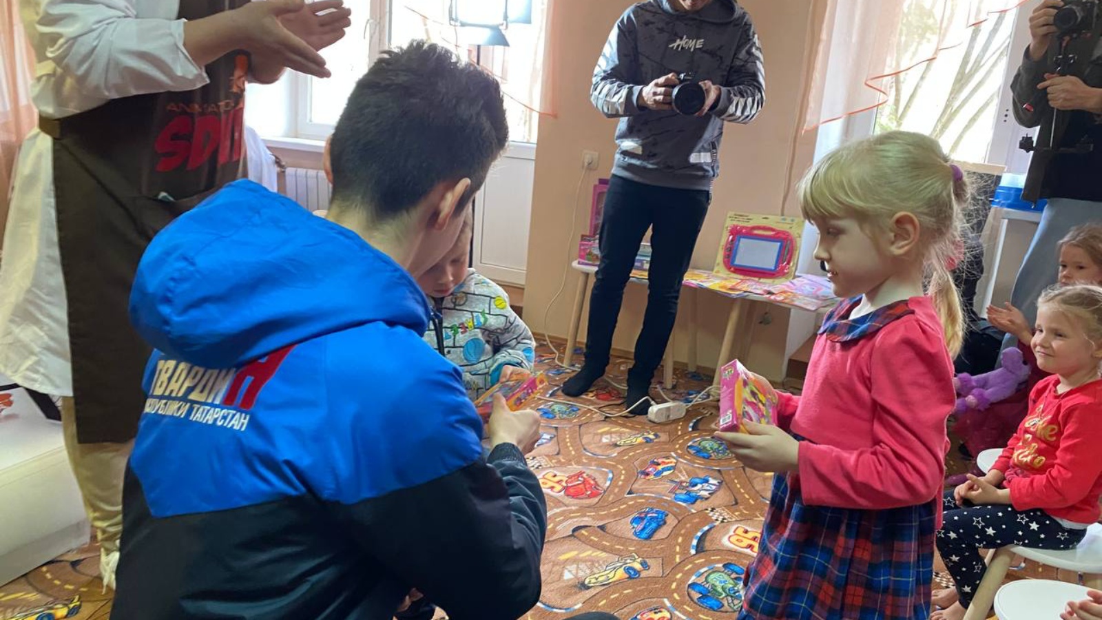 В понедельник, 25 апреля активисты «Молодой Гвардии» Республики Татарстан открыли детскую игровую комнату в пункте временного размещения, открытого на базе республиканского санатория «Ливадия». Открытие комнаты стало возможным благодаря помощи, оказанной предприятием «Транснефть-Прикамье».