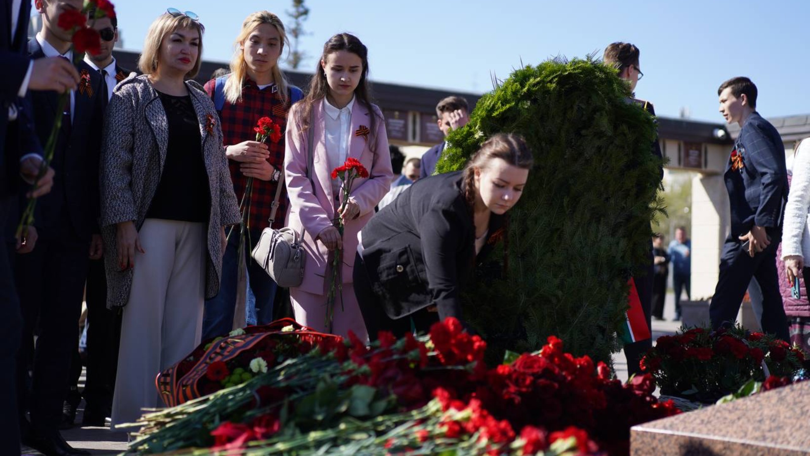 В понедельник, 9 мая, в День Победы, на Архангельском кладбище в Казани активисты «Молодой Гвардии» Республики Татарстан совместно с Председателем Государственного Совета Республики Татарстан Фарид Хайруллович Мухаметшин и депутатами парламента возложили венки и цветы к монументу «Воин», а также к памятному знаку воинам, умершим в госпиталях Казани во время войны.