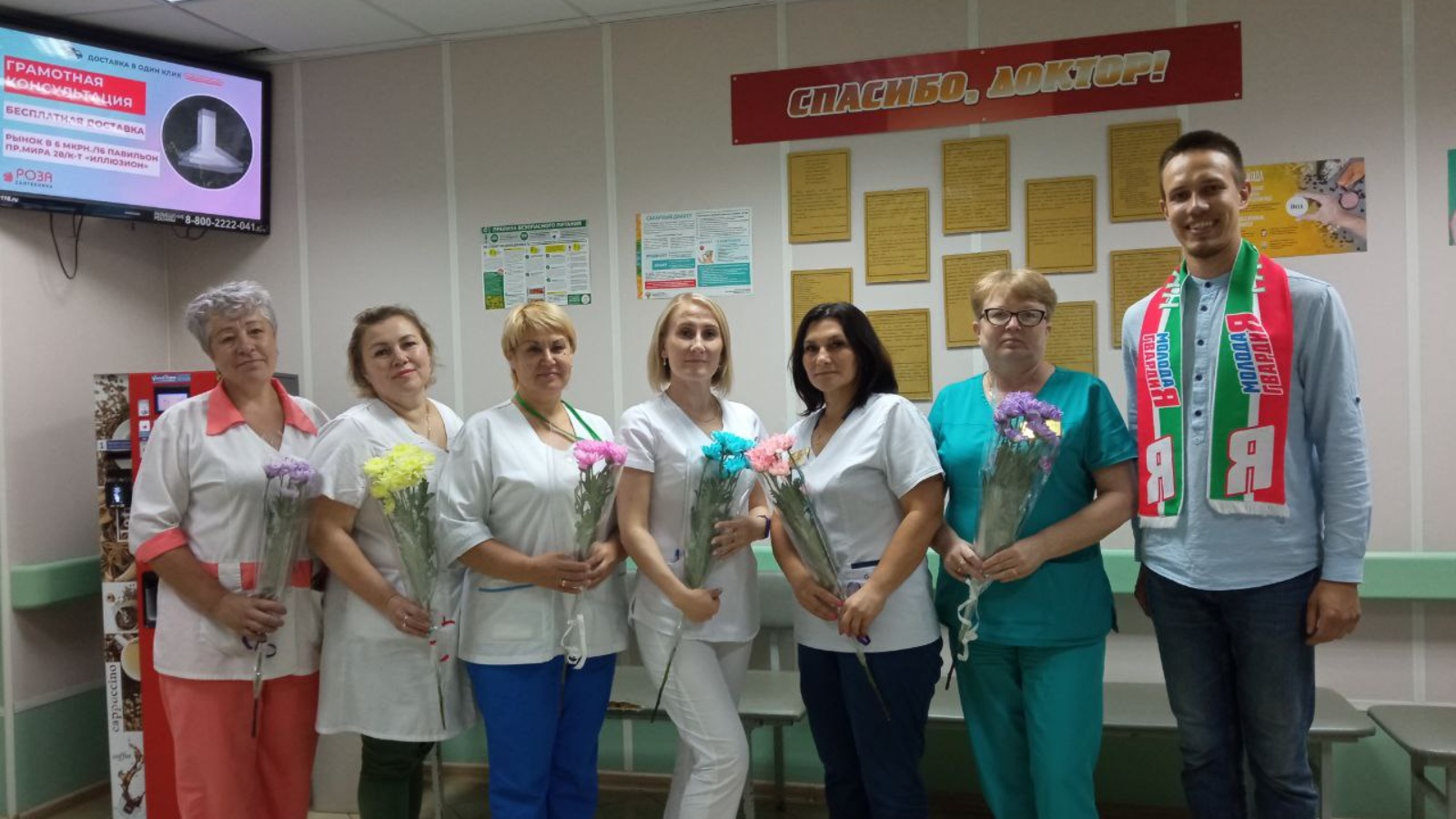 19 июня активисты Елабужского местного отделения «Молодой Гвардии» Республики Татарстан поздравили медицинских работников Центральной районной больницы с профессиональным праздником – Днем медицинского работника. Молодогвардейцы вручили медицинским работникам букеты цветов и конфетные наборы для чаепития.