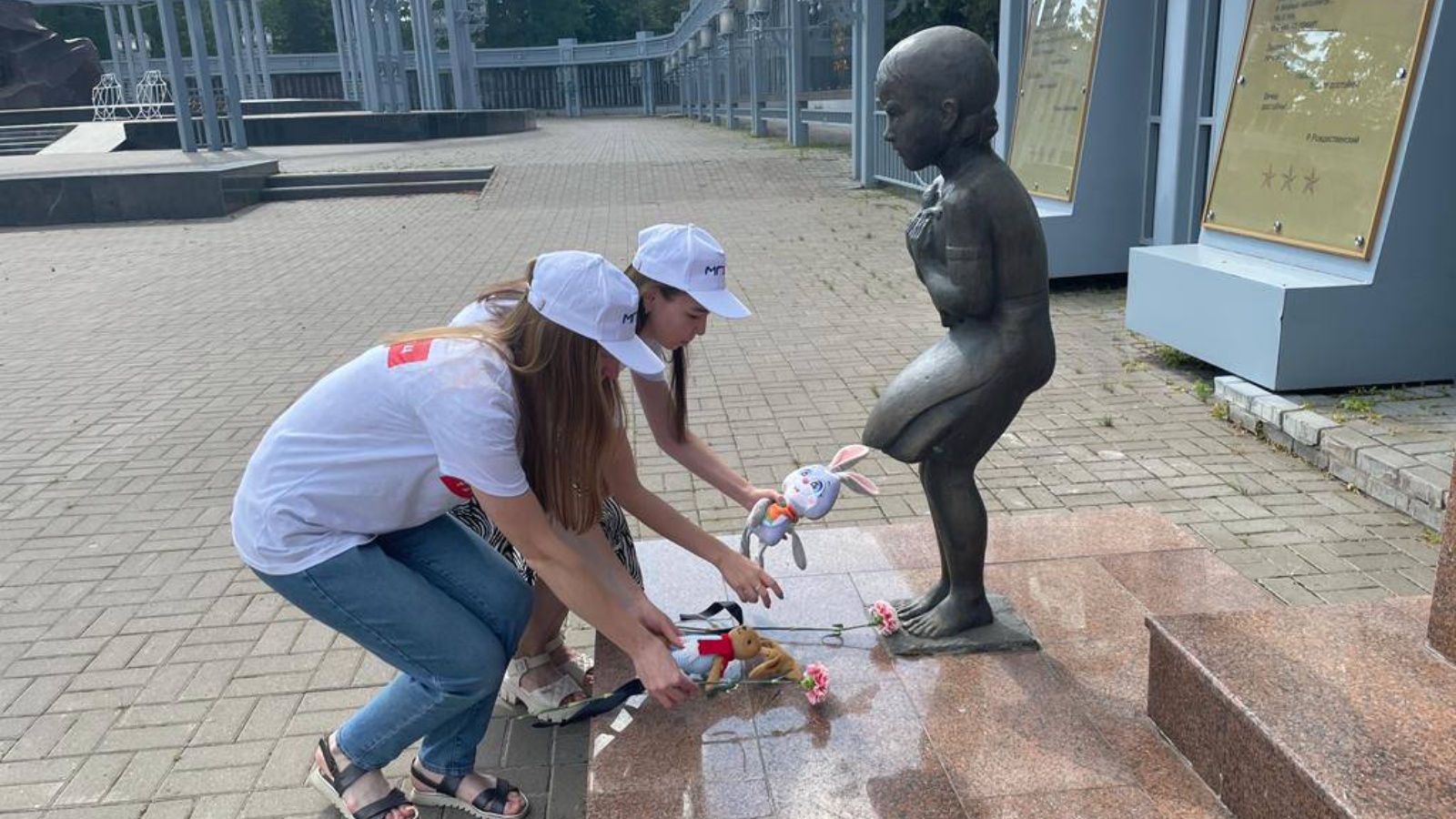 Сегодня, 27 июля активисты Альметьевского местного отделения «Молодой Гвардии» Республики Татарстан почтили память детей-жертв войны на Донбассе. Молодогвардейцы возложили цветы и игрушки к памятнику детям-жертвам войны и почтили память минутой молчания.