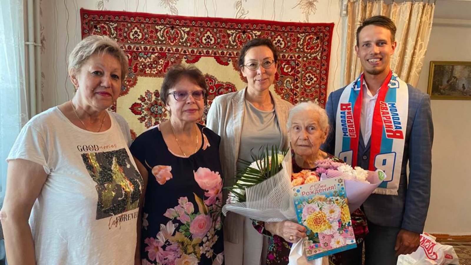 3 сентября активисты Елабужского местного отделения «Молодой Гвардии» Республики Татарстан вместе с заместителем главы города Елабуга провели федеральную акцию «Выходные с ветераном». В рамках акции молодогвардейцы поздравили с 99-летием участницу боевых действий Великой Отечественной войны – Горбунову Лидию Ильиничну. Вручив букет и подарок с наилучшим и пожеланиями.