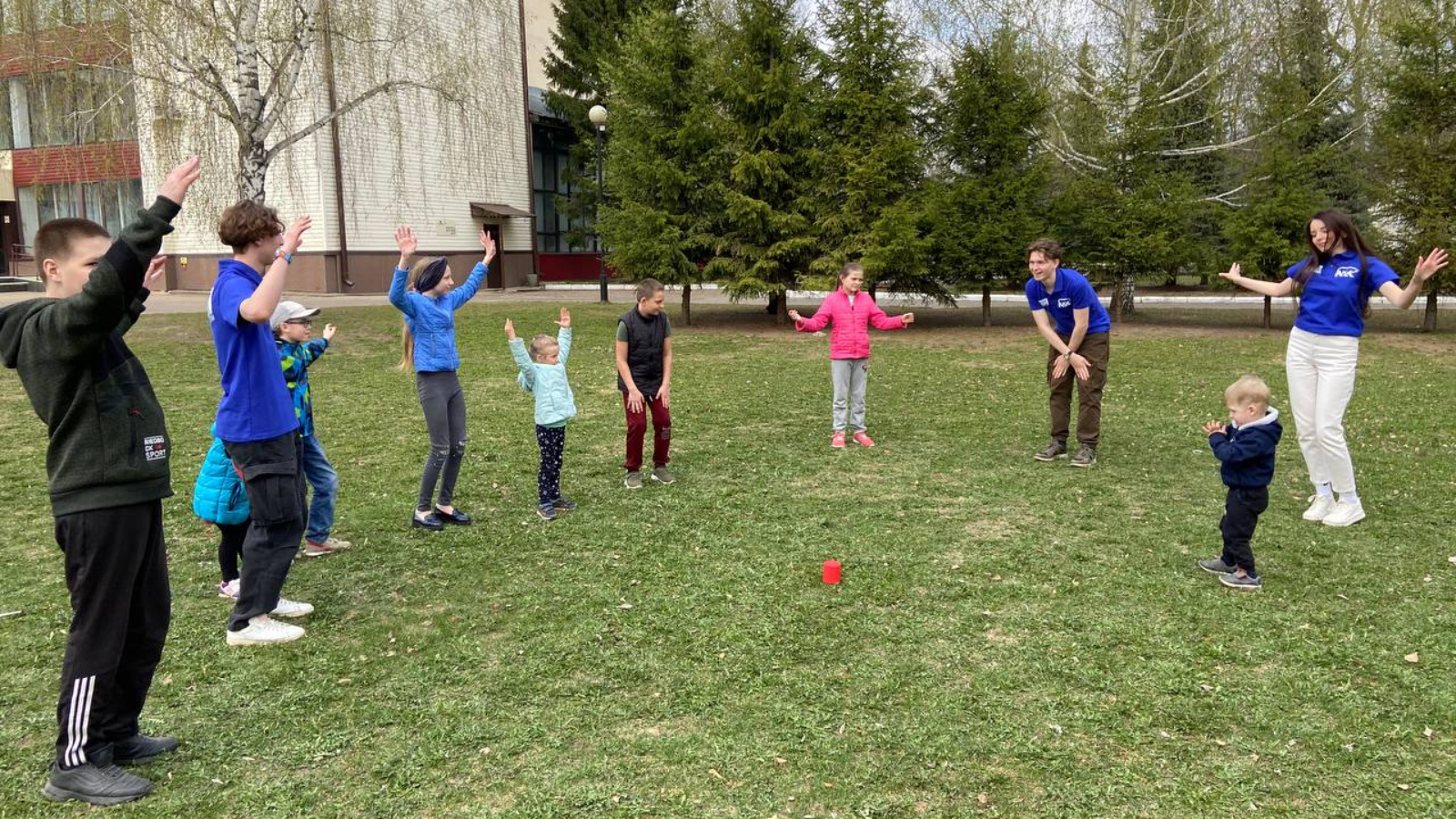 Активисты «Молодой Гвардии» Республики Татарстан организовали утреннюю зарядку на свежем воздухе для детей вынужденных переселенцев