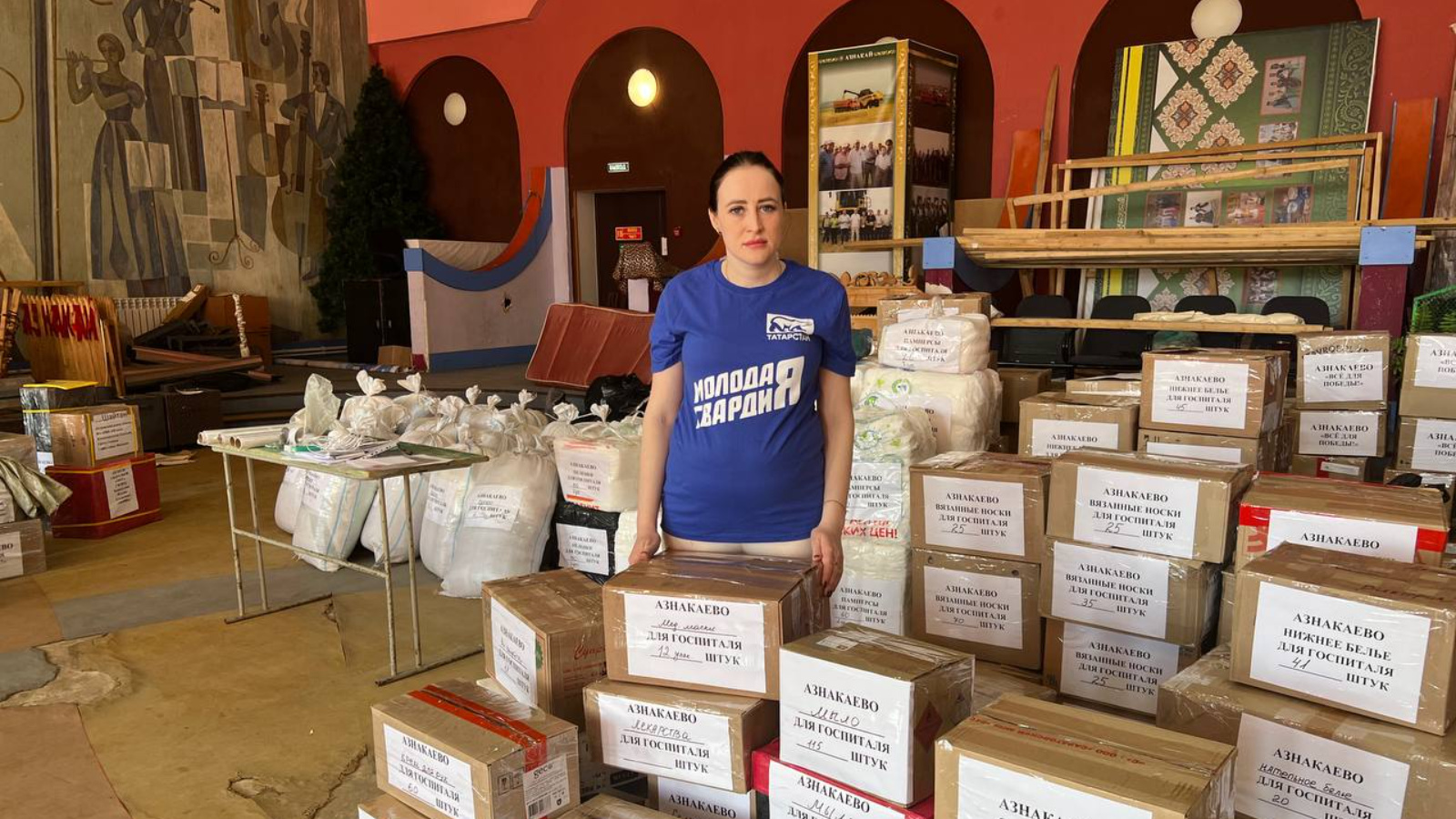 Активисты «Молодой Гвардии» Азнакаевского местного отделения Республики Татарстан помогают в сборе и фасовке посылок для мобилизованных граждан.