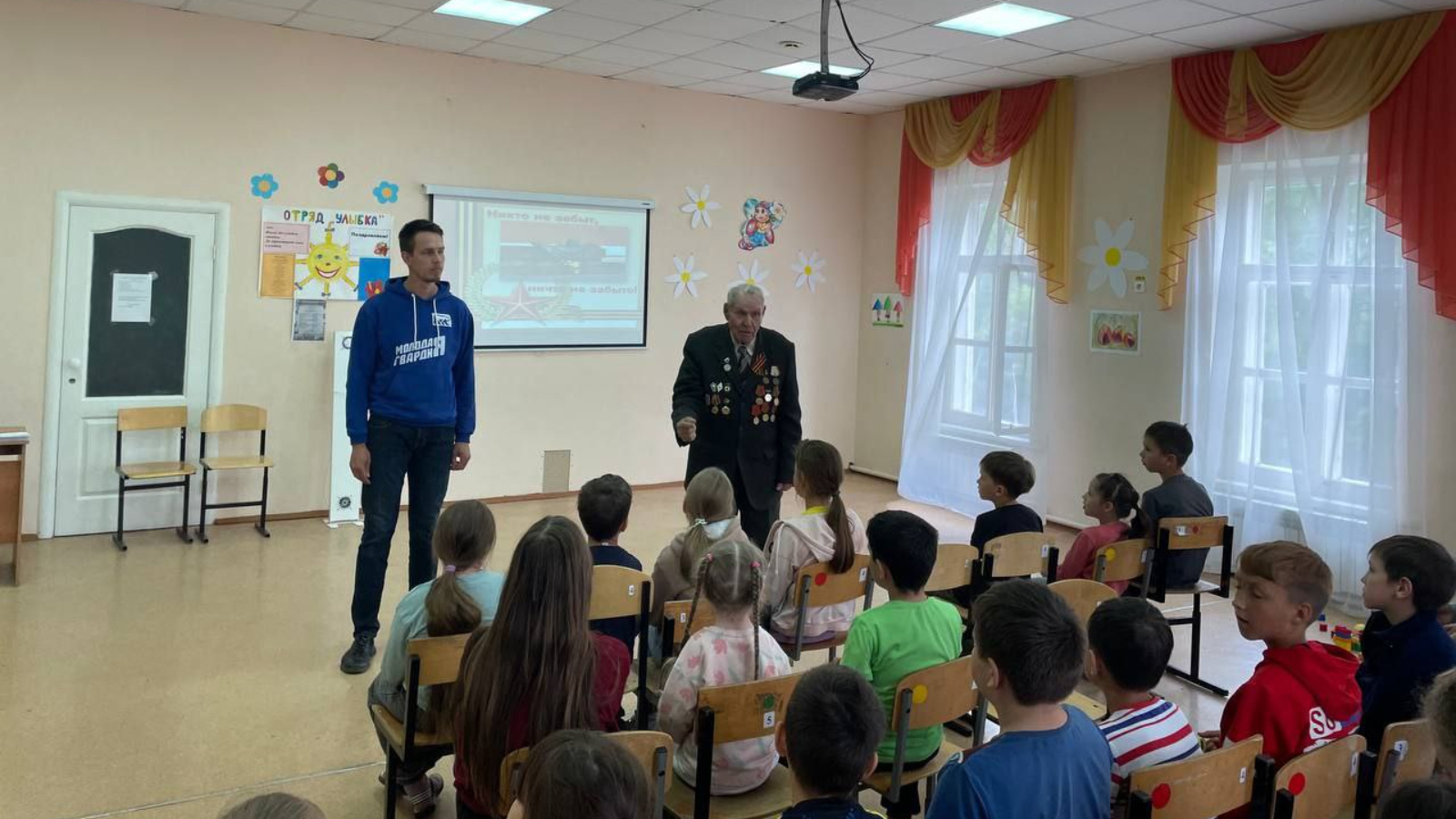 В рамках встречи ветеран поделился своим жизненным опытом с ребятами и отвечал на их вопросы. Ребята, с большим удовольствием задавали вопросы на тему Великой Отечественной Войны, а также затронули тему про специальной военной операции. Ветеран объяснил детям, что порой приходится принимать нелегкие решения, чтобы защитить свою Родину.