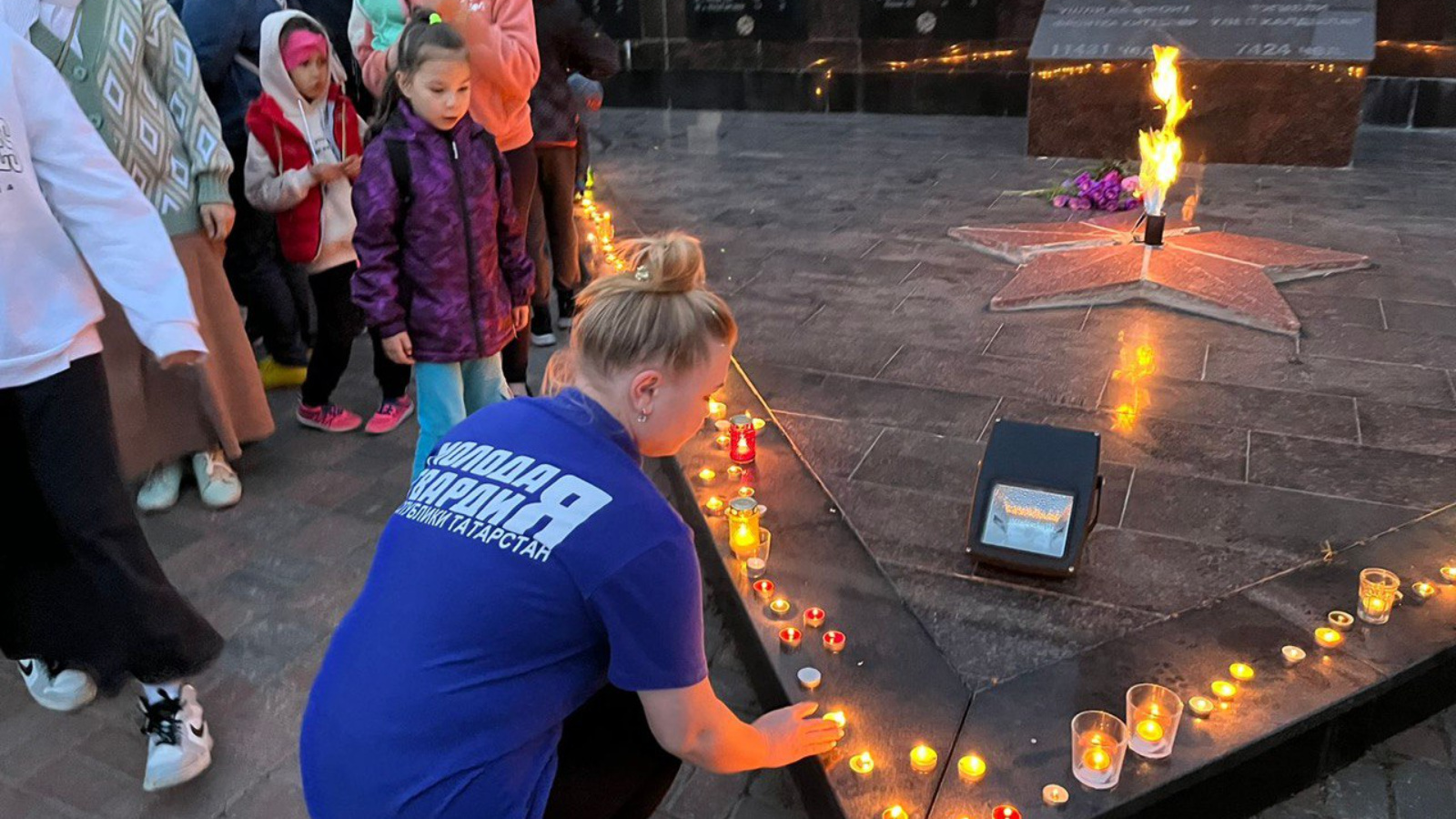 Активисты Высокогорского района возложили цветы и зажгли свечи у Мемориала. В завершении акции активисты и жители района почтили память погибших минутой молчания.