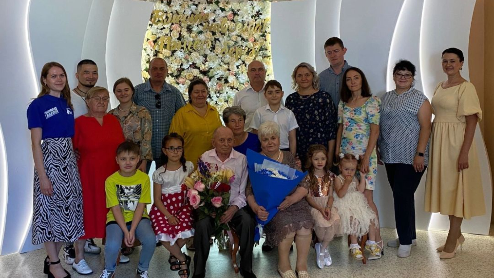Теплые и трогательные слова в адрес любимых и дорогих людей прозвучали из уст детей, внуков, друзей. С золотой свадьбой юбиляров поздравили активисты «Молодой Гвардии» Республики Татарстан.