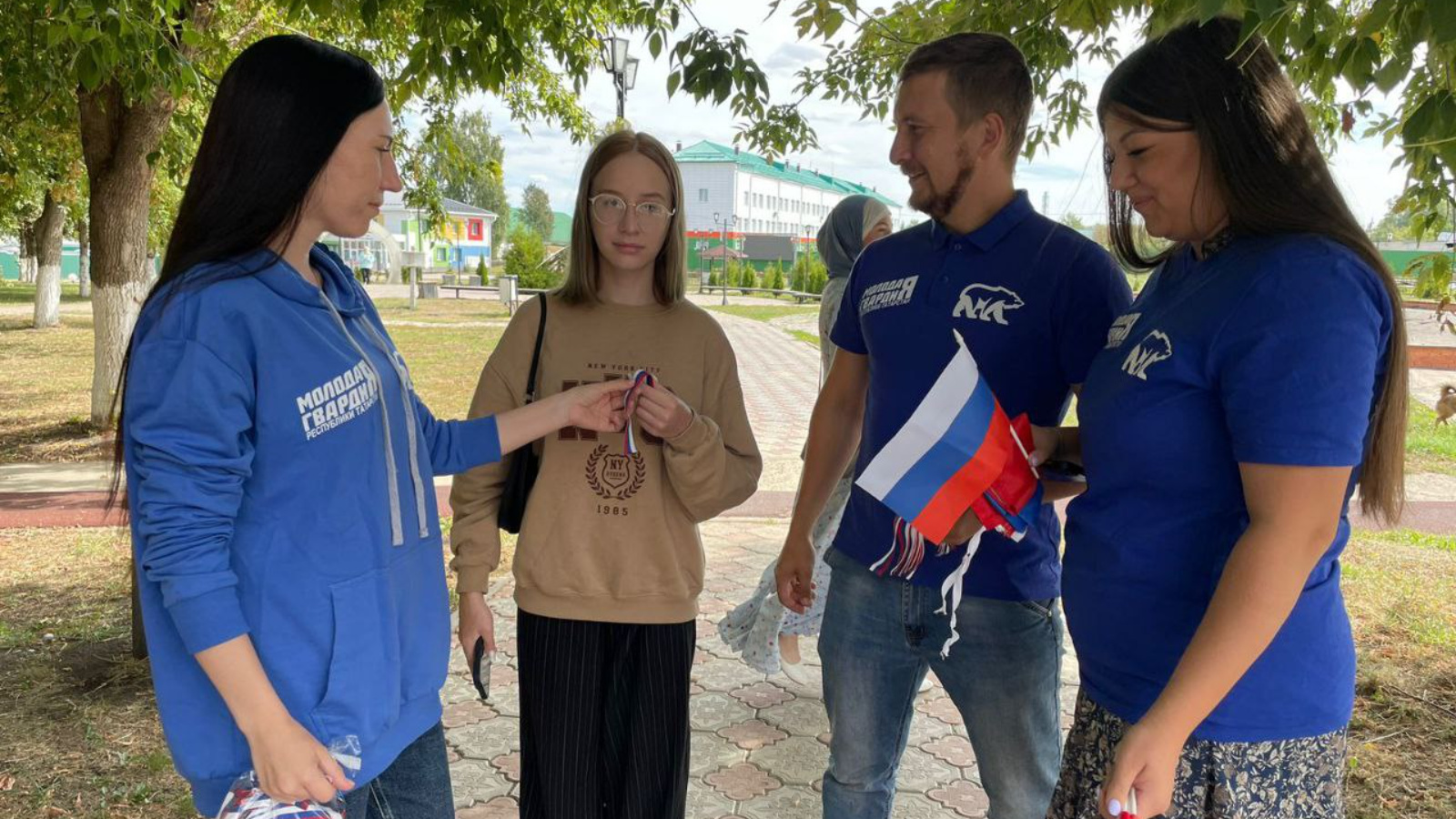 «Молодая Гвардия» Республики Татарстан Апастовского местного отделения провела акцию по раздаче триколоров РФ в день Государственного флага