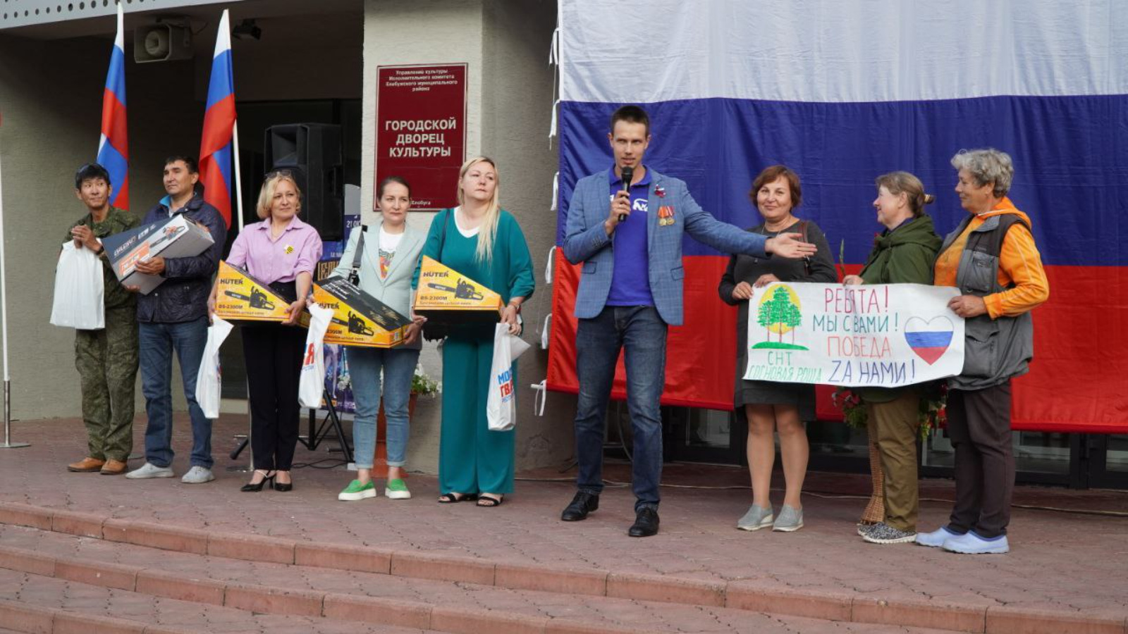 Молодогвардейцы Елабужского района провели благотворительную культурную программу. В рамках которой был организован концерт "Ты - символ наш, Ты символ Мой!" , мастер-класс по плетению маскировочных сетей, пяточек по написанию писем участникам СВО, конкурс рисунков на асфальте "Я люблю свою сторону!", выставка книг "Край родной - Россия!", мастер-класс по сборке и разборке АК 47, показательно выступление подросткового клуба "Юный Десантник" и акция по раздаче лент "Триколор". В ходе мероприятия руководитель местного отделения «Молодой Гвардии» Роман Еспанешников вручил 5 бензопилы с комплектом масел и цепей для воинских частей бензопилы с комплектом масел и цепей.