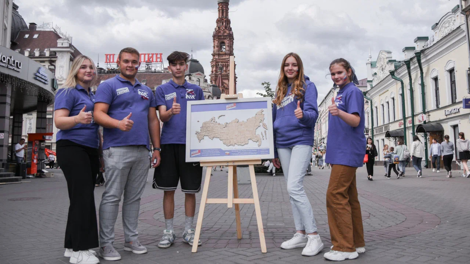 В рамках акции молодогвардейцы организовали праздничную акцию на центральной пешеходной улице Баумана, где раздавали жителям и гостям столицы ленты с триколором, а детям наносили аквагрим с изображением флага РФ.