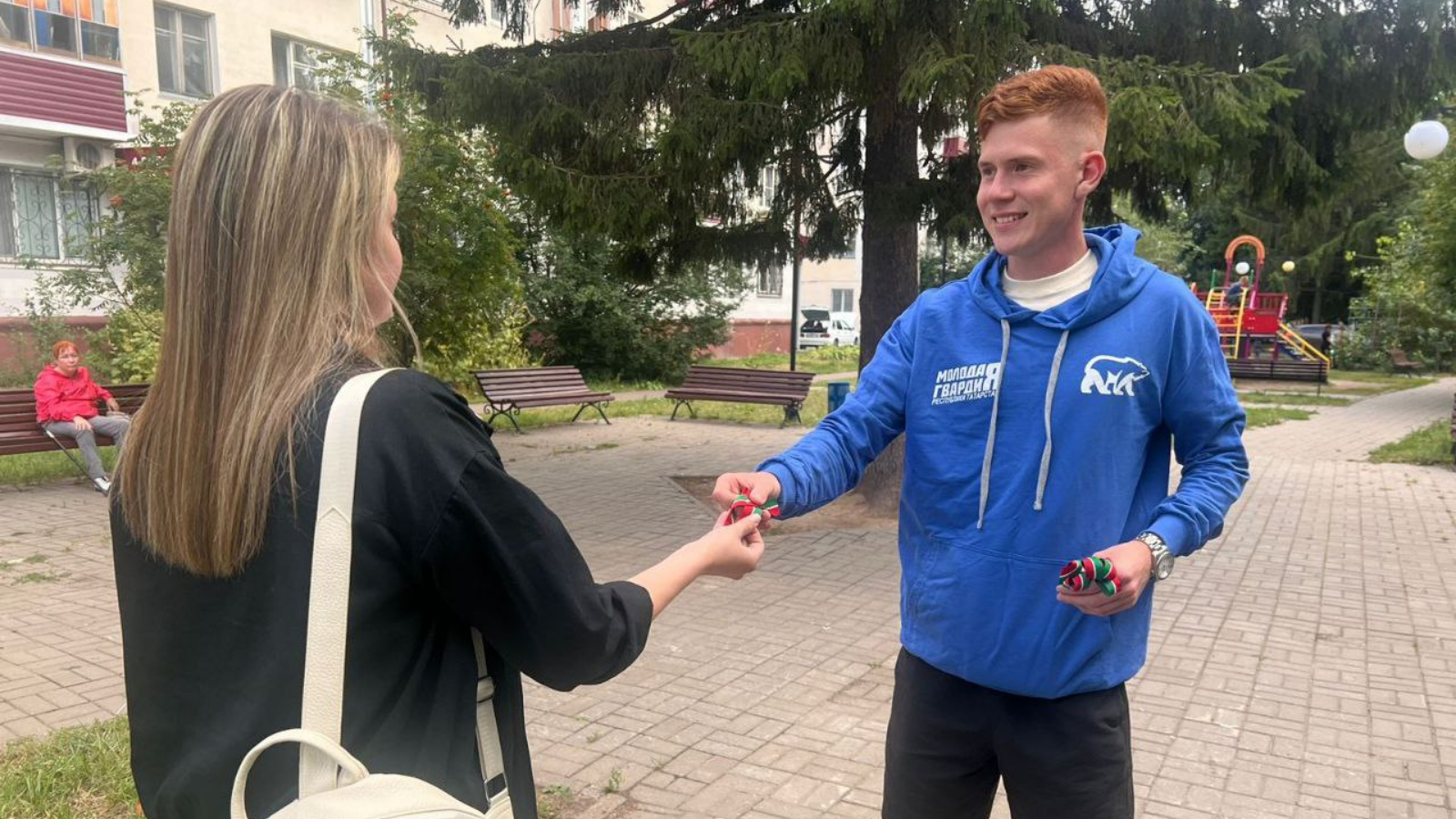 Активисты Зеленодольского отделения "Молодой Гвардии" Республики Татарстан поздравили местных жителей с праздником и раздали триколорные ленты с изображением флага Республики Татарстан. В рамках акции активисты вручили более 130 лент.