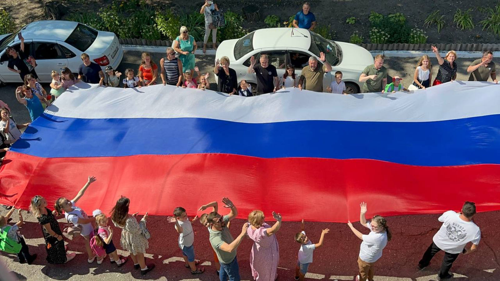 В рамках акции молодогвардейцы совместно с местными жителями Луганской Народной Республики города Лисичанска развернули большой триколор Российской Федерации размером 10*20 метров. В данном мероприятие приняли участие депутат Госдумы Татьяна Ларионова, руководитель регионального исполкома ТРО ВПП «Единая Россия» Марат Самигуллин, руководитель регионального штаба татарстанского реготделения «Молодой Гвардии Единой России» Руслан Шигабуддинов, управляющий делами ТРО ВПП «Единая Россия» Андрей Губанов и руководитель фракции в Государственном Совете РТ, заместитель председателя Государственного Совета РТ Юрий Камалтынов.
