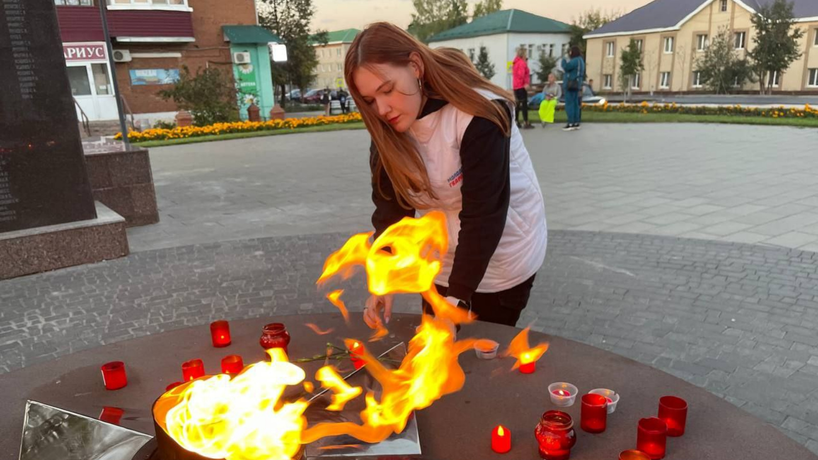 «Молодая Гвардия» Республики Татарстан Агрызского местного отделения в День солидарности в борьбе с терроризмом зажгла свечи у мемориала и провела акцию.