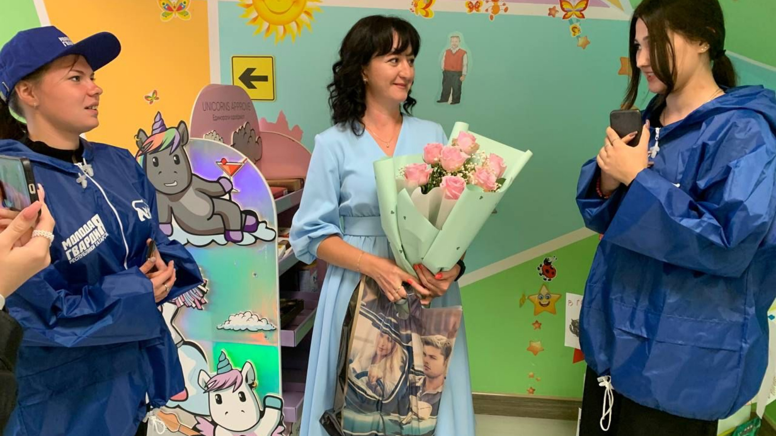 Активисты Альметьевского района посетили детский сад «Жар птица» для того, чтобы поздравить педагогов с профессиональным праздником. В рамках визита молодогвардейцы вручили воспитателям цветы и памятные подарки.