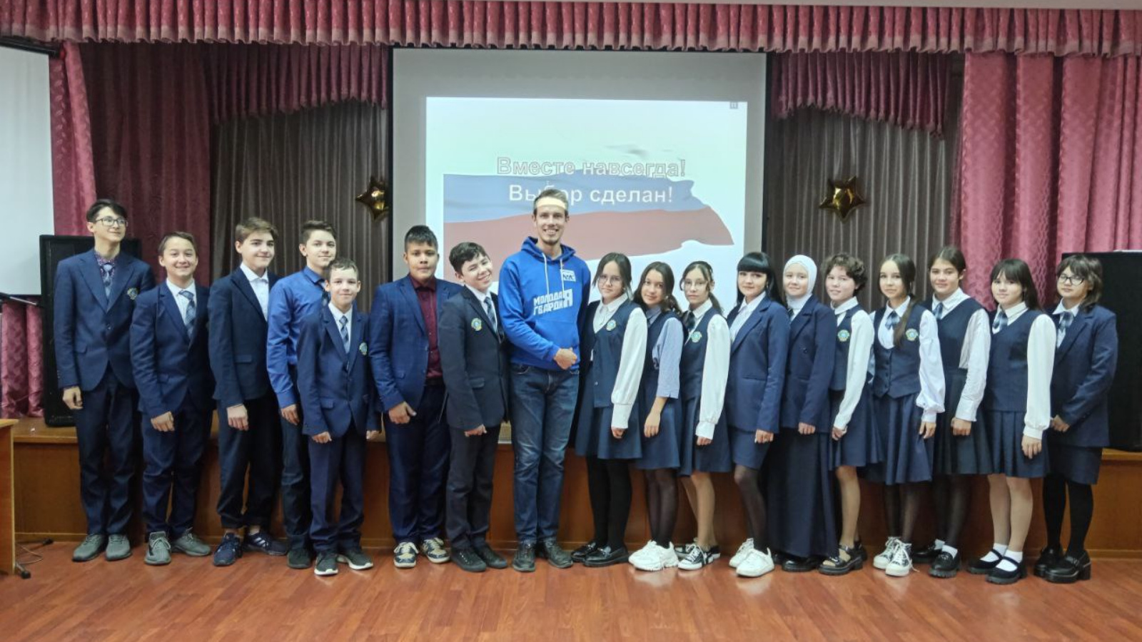 Елабужское местное отделение «Молодой Гвардии» Республики Татарстан посетила учебные заведения рациона и провела уроки в день ЛДНР, Запорожской и Херсонской областей в состав Российской Федерации.
