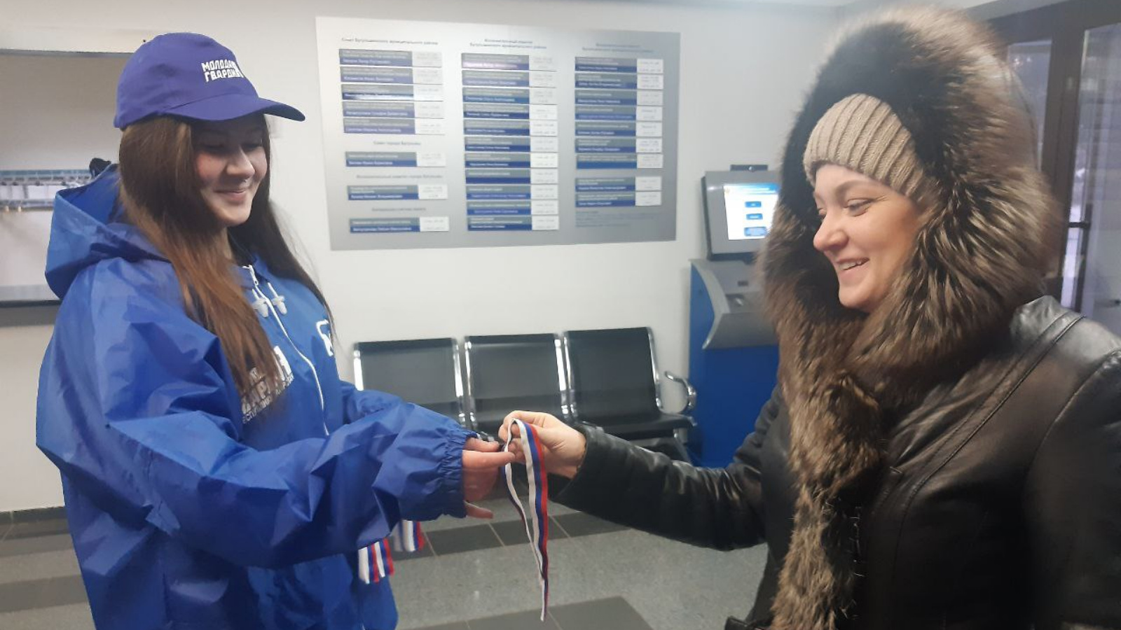 Так, в рамках мероприятия активисты раздали более 170 триколорных лент, символизирующие цвета флага России