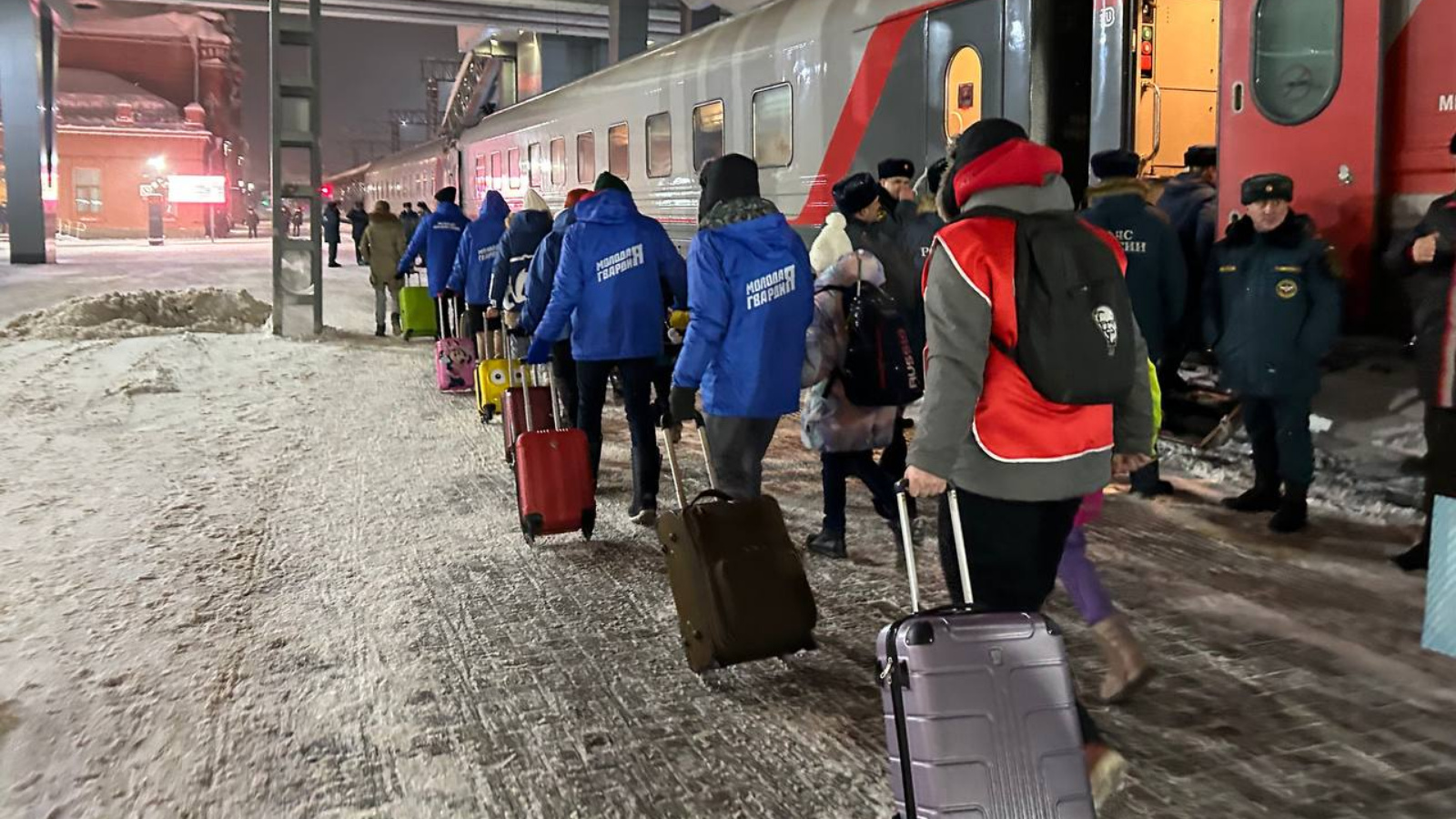 В свою очередь активисты «Молодой Гвардии Единой России» встретили детей с поезда и помогли им донести чемоданы до автобуса.
