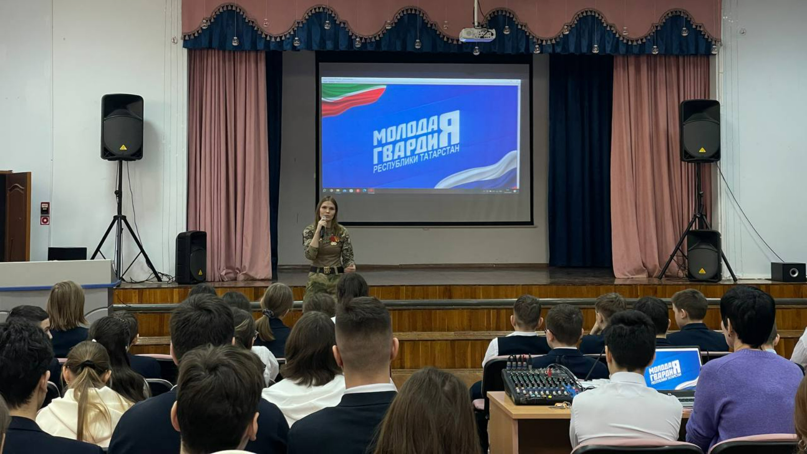 На базе Казанского Лицея №23 активисты «Молодой Гвардии» Республики Татарстан организовали встречу для учащихся с разведчицей-снайпером Мартой Макаровой с позывным Алекс.