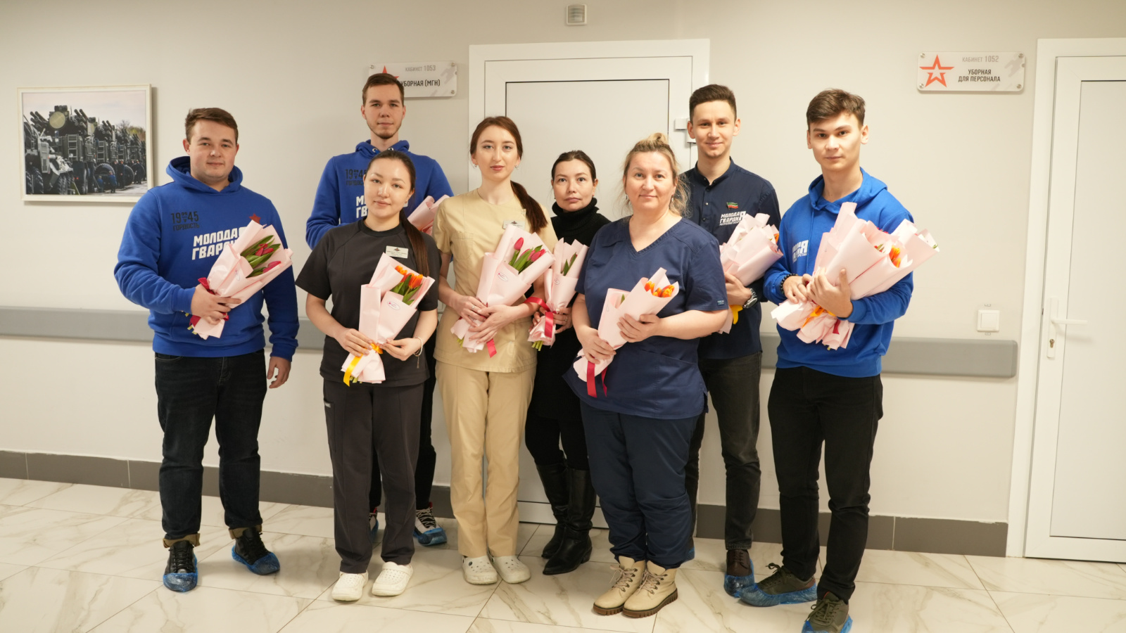 В рамках акции команда поздравила 25 сотрудниц Казанского военного госпиталя. Ребята выразили благодарность врачам и медсестрам за то, что во время проведения специальной военный операции они лечат наших бойцов, создавая надежный и крепкий тыл России.