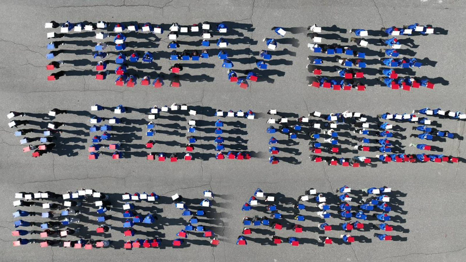 Молодогвардейцы, студенты высших и средних учебных заведений города и школьники собрались на территории исторического парка «Россия – моя история» и выстроились в фразы: «Мы первые в космосе» и «Поехали» с табличками в цвета российского триколора.
