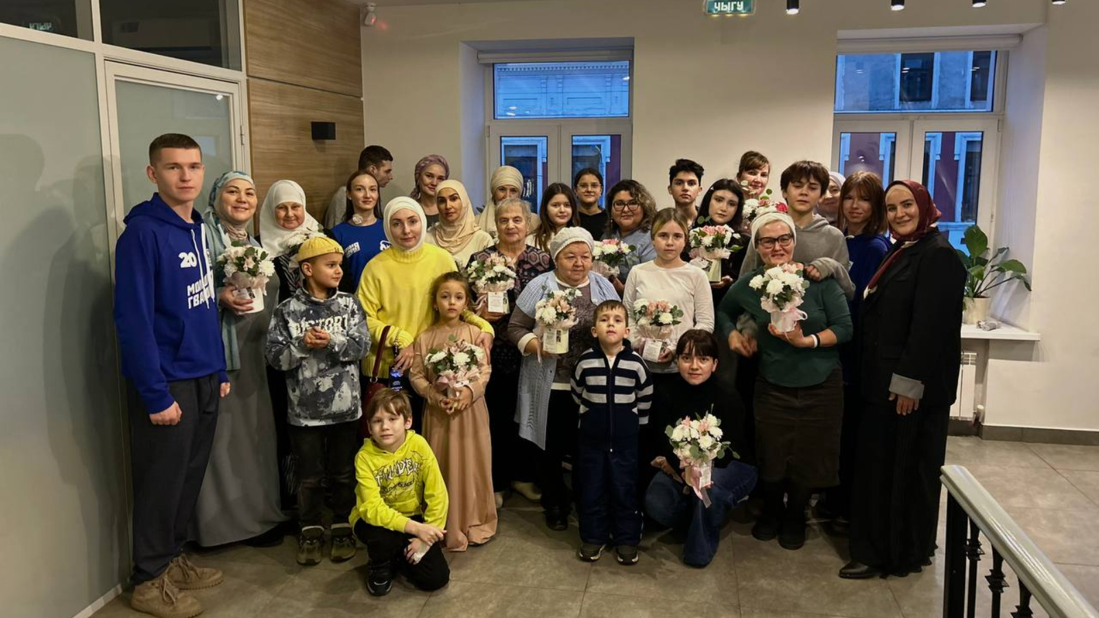 Женщинам также подарили букеты цветов и поздравили с праздником.