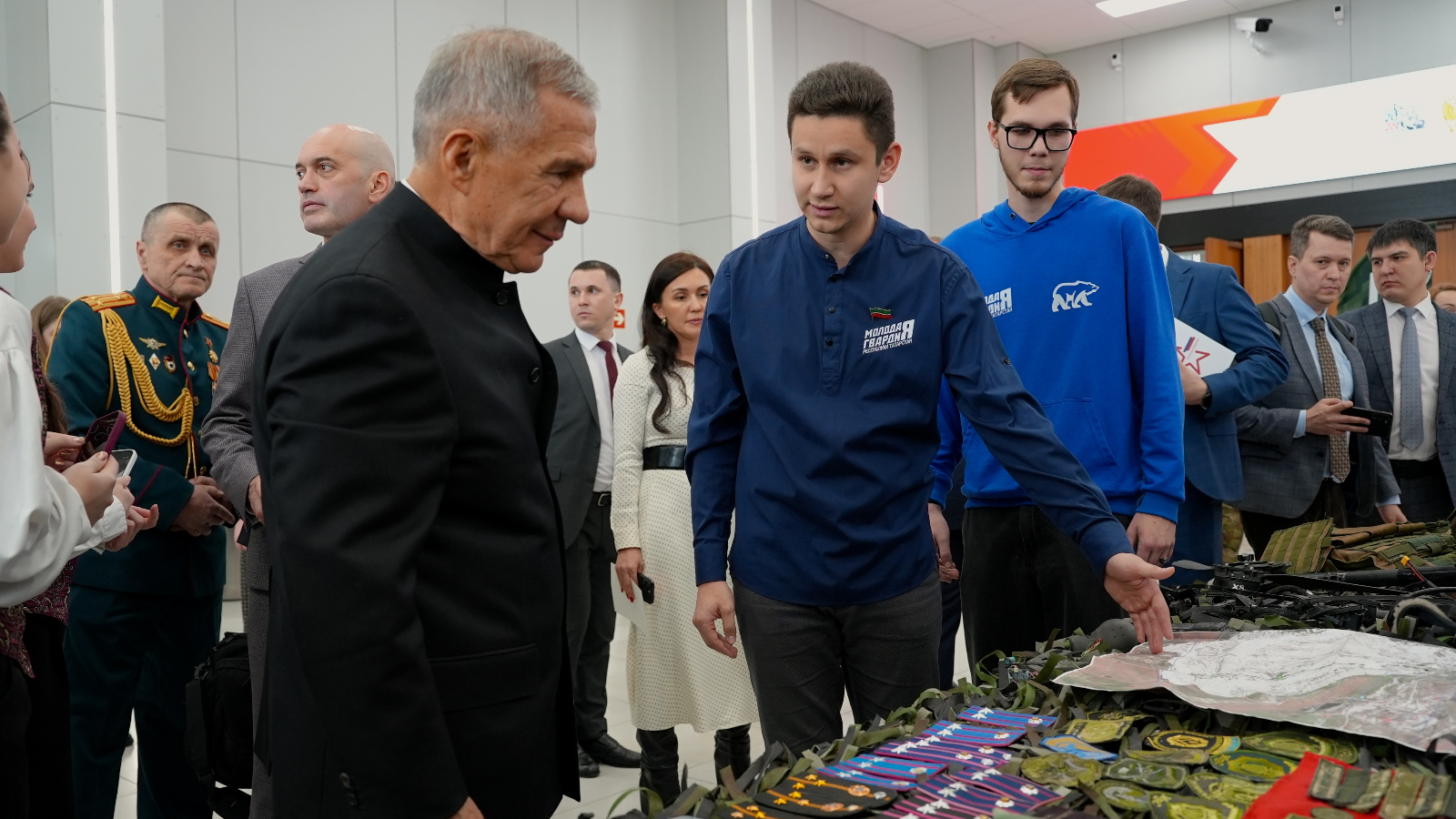 В ходе мероприятия молодогвардейцы представили Раису Республики Татарстан Рустаму Минниханову, представителям законодательной и исполнительной ветвей власти, Героям России, ветеранам боевых действий, участникам СВО и общественным деятелям экспозицию, посвященную работе регионального Гуманитарного центра МГЕР.