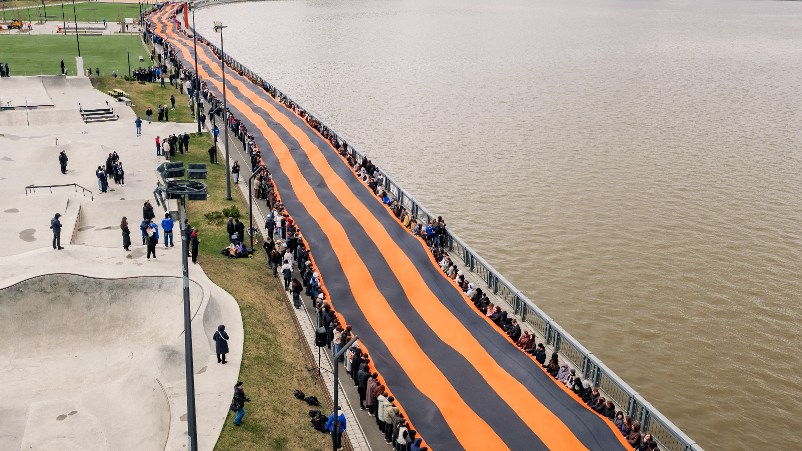Более 800 человек приняли участие в развертывании самой большой Георгиевской ленты в России длиной 300 метров. Среди участников акции были молодогвардейцы, студенты вузов и ссузов города, школьники, активисты общественных организаций Татарстана и жители Казани.